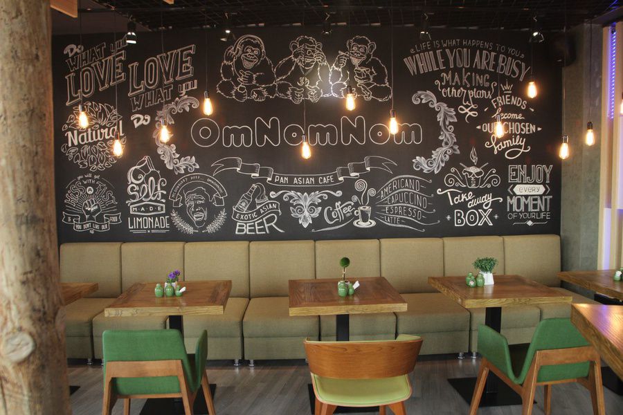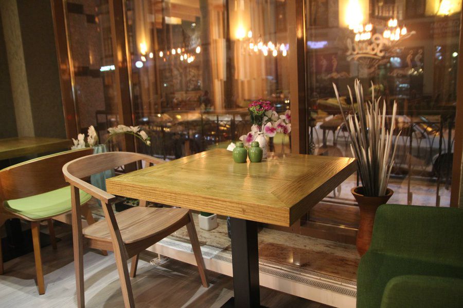 Интерьерный лейтмотив этого неординарного кафе — дерево. Из природного материала здесь сделаны и столы, и колонны, и даже мелкие детали. Здесь действительно необычно, но при этом очень уютно.